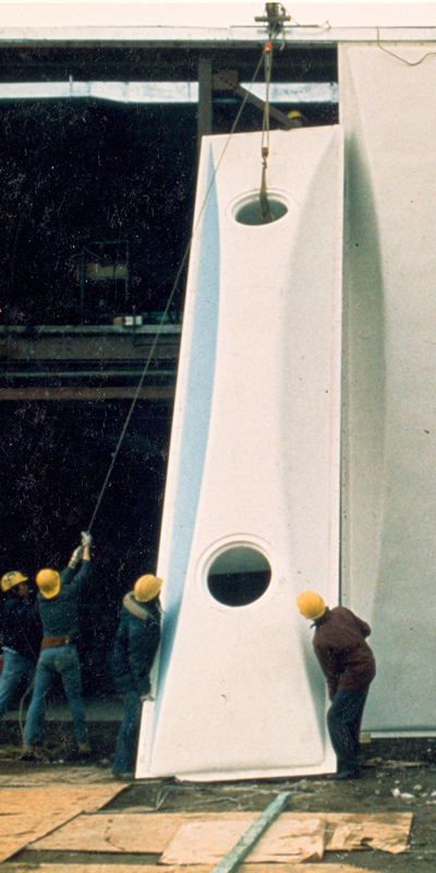 C’est lors d’une rencontre avec Guy Gérin-Lajoie en 2010, dans le cadre de la préparation d’un cours d’atelier sur les polymères à l’École d’architecture de l’Université de Montréal, que j’ai pleinement pris la mesure de l’énergie qui avait animé la firme. C’était un vendredi de la fin de janvier, en début d’après-midi. À 82 ans et manifestement toujours prêt à relever de nouveaux défis, l’architecte avait conduit les 123 kilomètres depuis Mont-Tremblant après une matinée passée sur les pistes de ski. Transportant deux lourdes valises et un enthousiasme contagieux, Guy avait hâte de partager les connaissances développées au fil de sa carrière : d’abord comme co-fondateur de Papineau Gérin-Lajoie Leblanc architectes (1959-1973), puis de PGL international ltée (1973-1981), avant de diriger sa propre agence, Guy Gérin-Lajoie architecte, jusqu’en 1993.