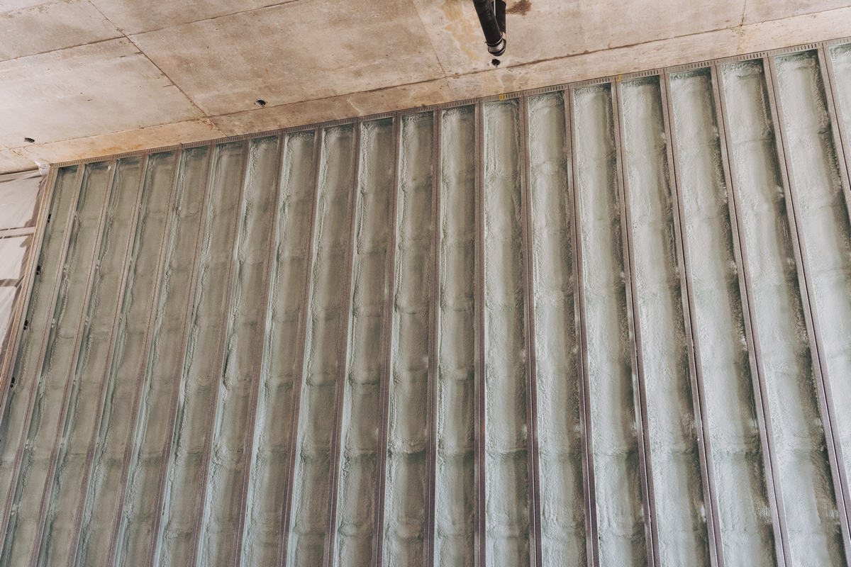 Projet Liva, Mirabel, assemblage de mur D-Max avec mousse giclée Airmétic Soya HP – Source : Huntsman Solutions Bâtiments.
