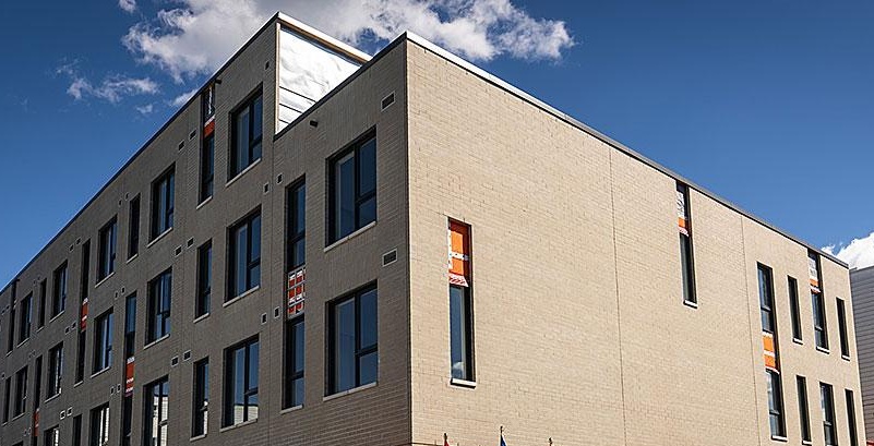 Ce projet bénéficiait du financement de l’Initiative pour la création rapide de logements de la Société canadienne d’hypothèques et de logement (SCHL) qui imposait un échéancier de construction de dix-huit mois. Le projet de 20 unités d’habitation s’est finalement étiré sur trois ans et demi. Compte tenu de l’échéancier restreint, l’Office municipal d’habitation de Laval (OMHL) a d’emblée considéré une approche modulaire. « On travaillait des unités répétitives avec des blocs de cuisines et de salles de bains répétées.