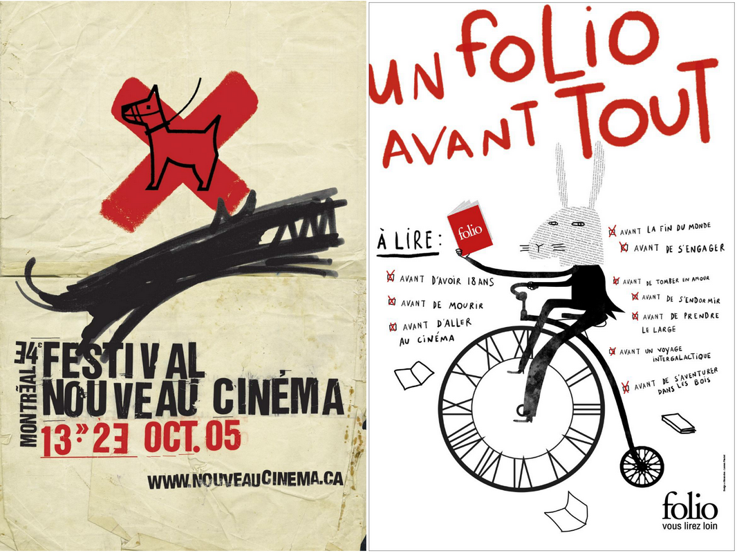 Carte blanche pour créer une affiche poétique pour la collection Folio. En référence au lapin de Alice au pays des merveilles, le personnage se hâte de lire tous les Folio possible pour aller plus loin, tout en restant paisible et élégant. Là encore, Laurent Pinabel limite les effets et se servant d’un impact visuel en noir et blanc et d’une touche rouge. – Sources : Laurent Pinabel