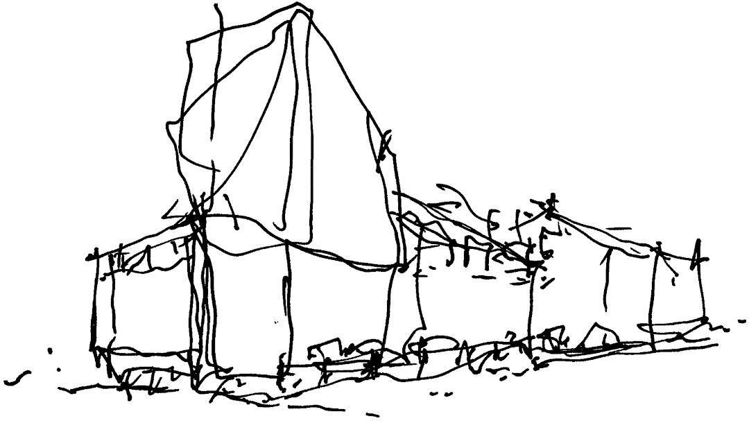 « Les croquis d’idéation de Claude Provencher nourrissent une architecture et une vision des lieux en devenir, cherchant à exprimer son appartenance aux milieux et contextes qu’elle investira, retraçant les us et coutumes pérennes et recherchant à reconnaître quelles directions ils prendront. Certes, le projet de l’architecture se réalise en équipe, dans l’interface des métiers. De l’idée aux dessins puis sur le chantier, tous nos métiers s’entretissent pour que l’espace prenne forme et se matérialise. De cette œuvre collective de l’architecture, le croquis d’idéation demeure une première matrice pour la saisir. Un creuset pour le projet qui se pense et celui qui devient. Un langage qui évoque et annonce, questionne et précise l’architecture à venir. »